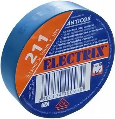 ANTICOR tape. electrical insulation. PVC 211. Electrix 38x10; black