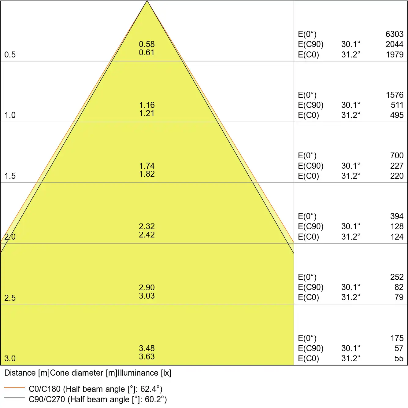 | Beam angle | 60 st. |