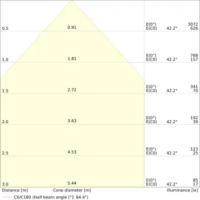 | Beam angle | 90 st. |