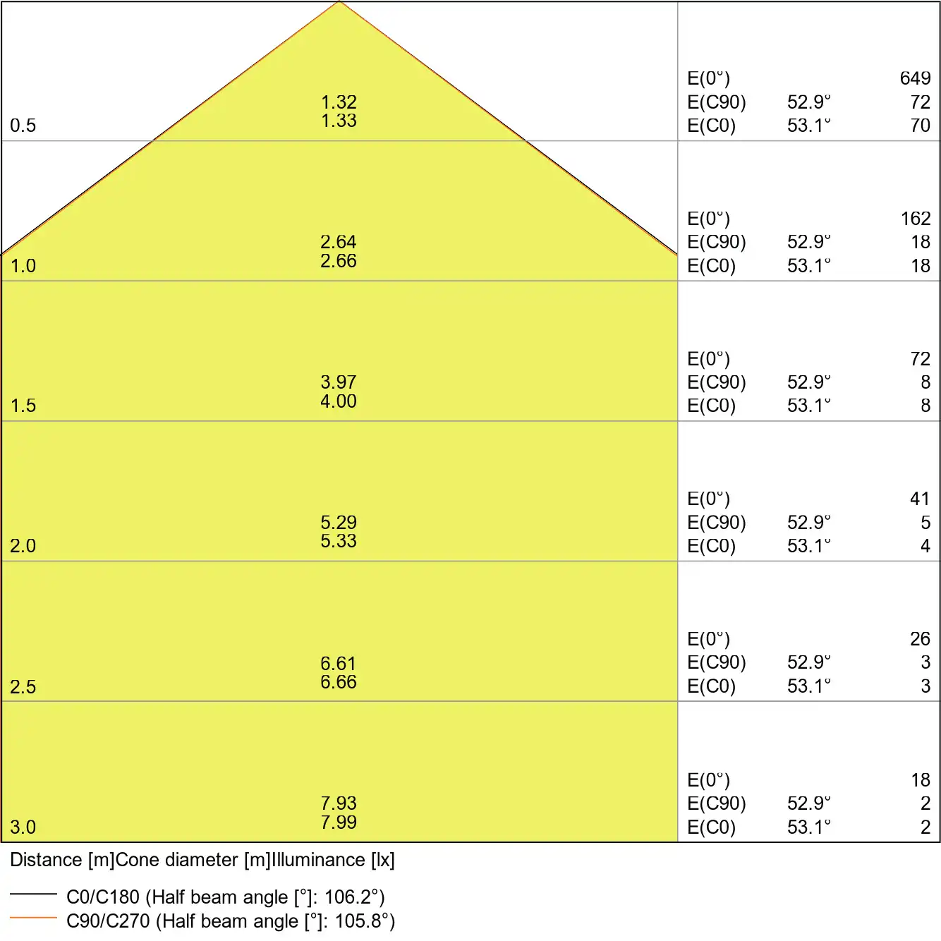 | Beam angle | 120 st. |