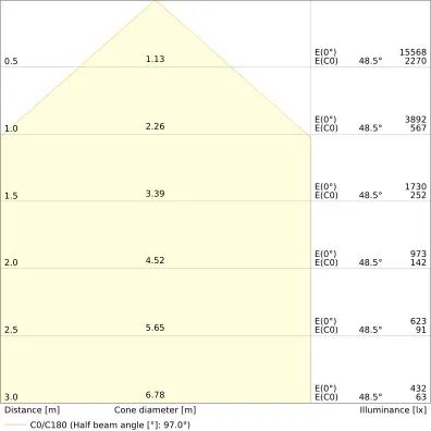 | Beam angle | 100 st. |