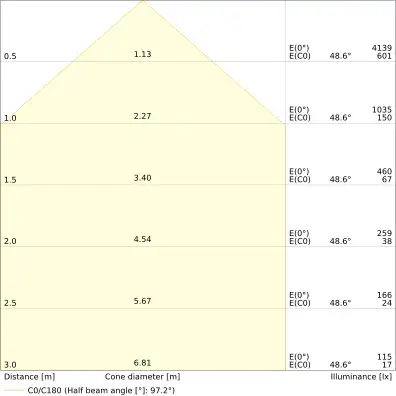 | Beam angle | 100 st. |