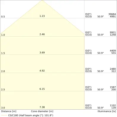 | Beam angle | 100 st. |
