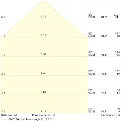 | Beam angle | 100 st. |