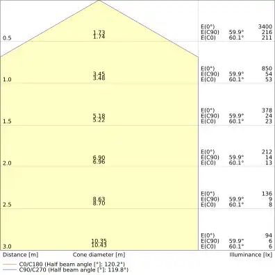 | Beam angle | 120 st. |