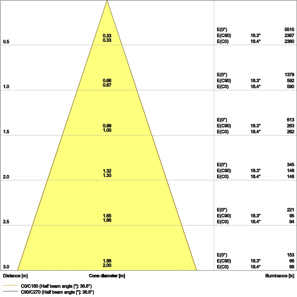 | Beam angle | 36 st. |