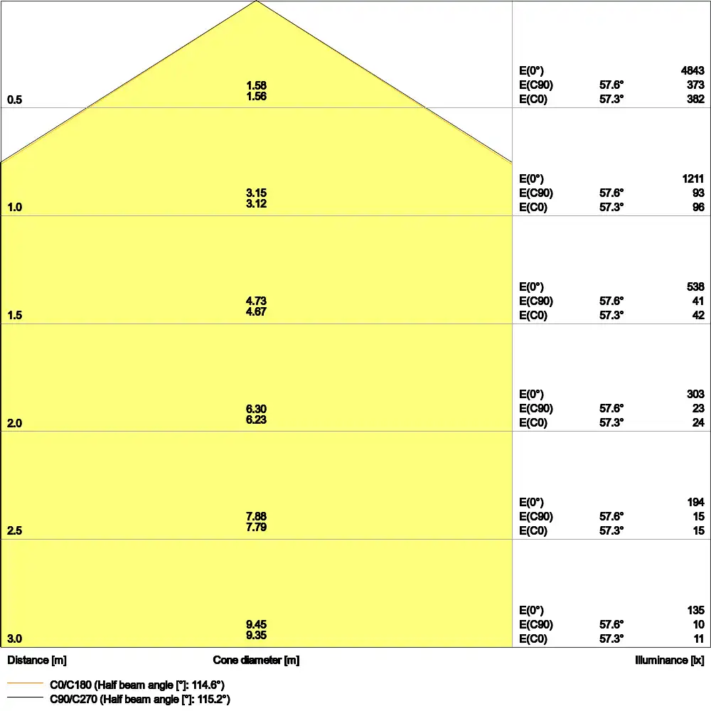 | Beam angle | 120 st. |