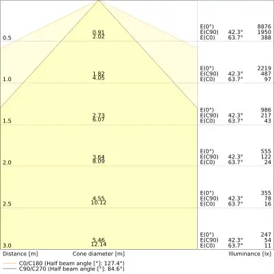 | Beam angle | 90 st. |