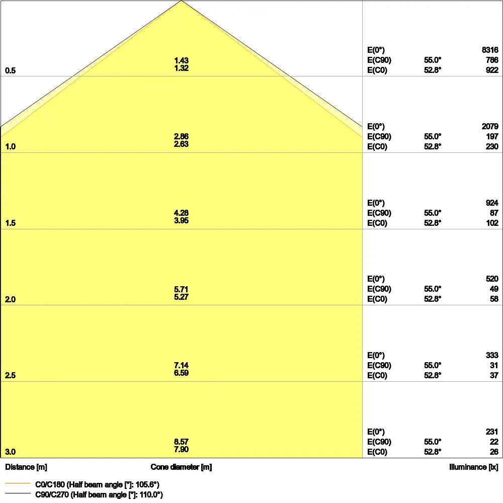 | Beam angle | 110.0 st. |