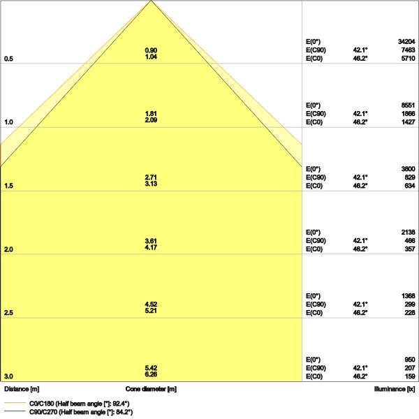| Beam angle | 90 st. |