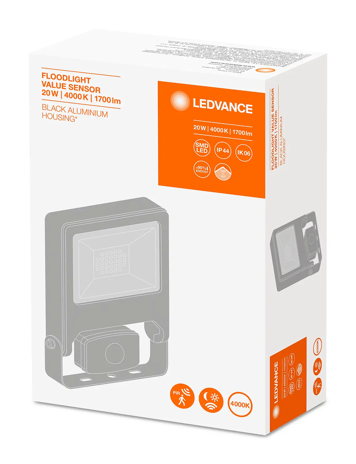 FLOODLIGHT COMPACT SENSOR 20W 840 SYM 100 BK