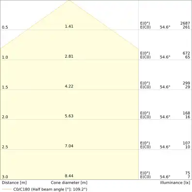 | Beam angle | 120 st. |
