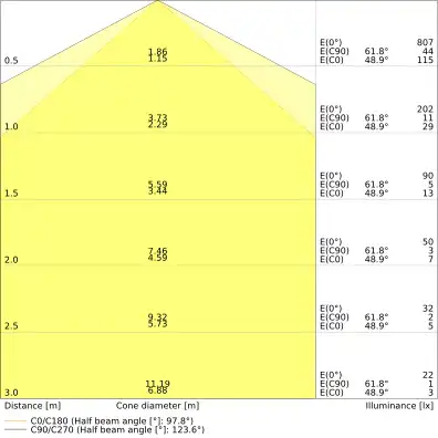 | Beam angle | 120 st. |