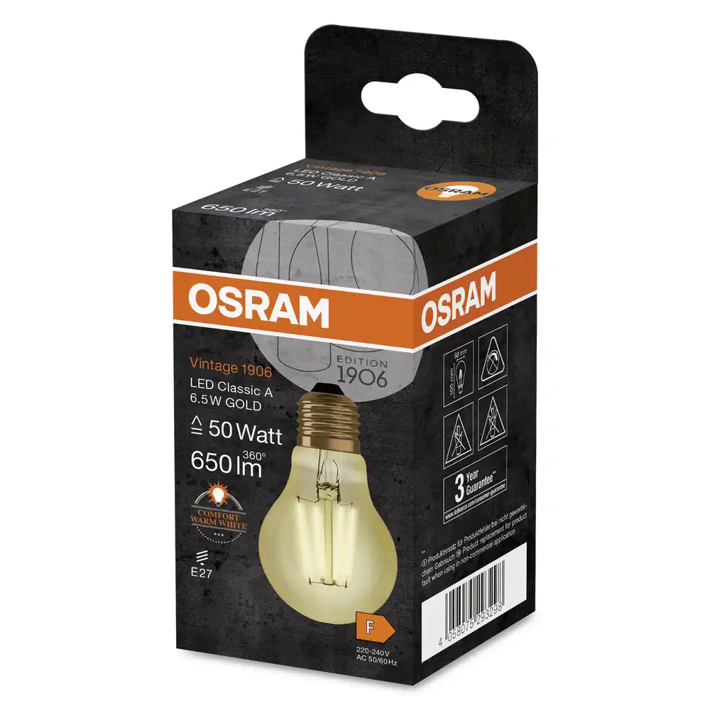 OSRAM LED filam.bulb Vintage.1906 A60 6.5W/50W E27 2400K 650lm NonDim 15Y