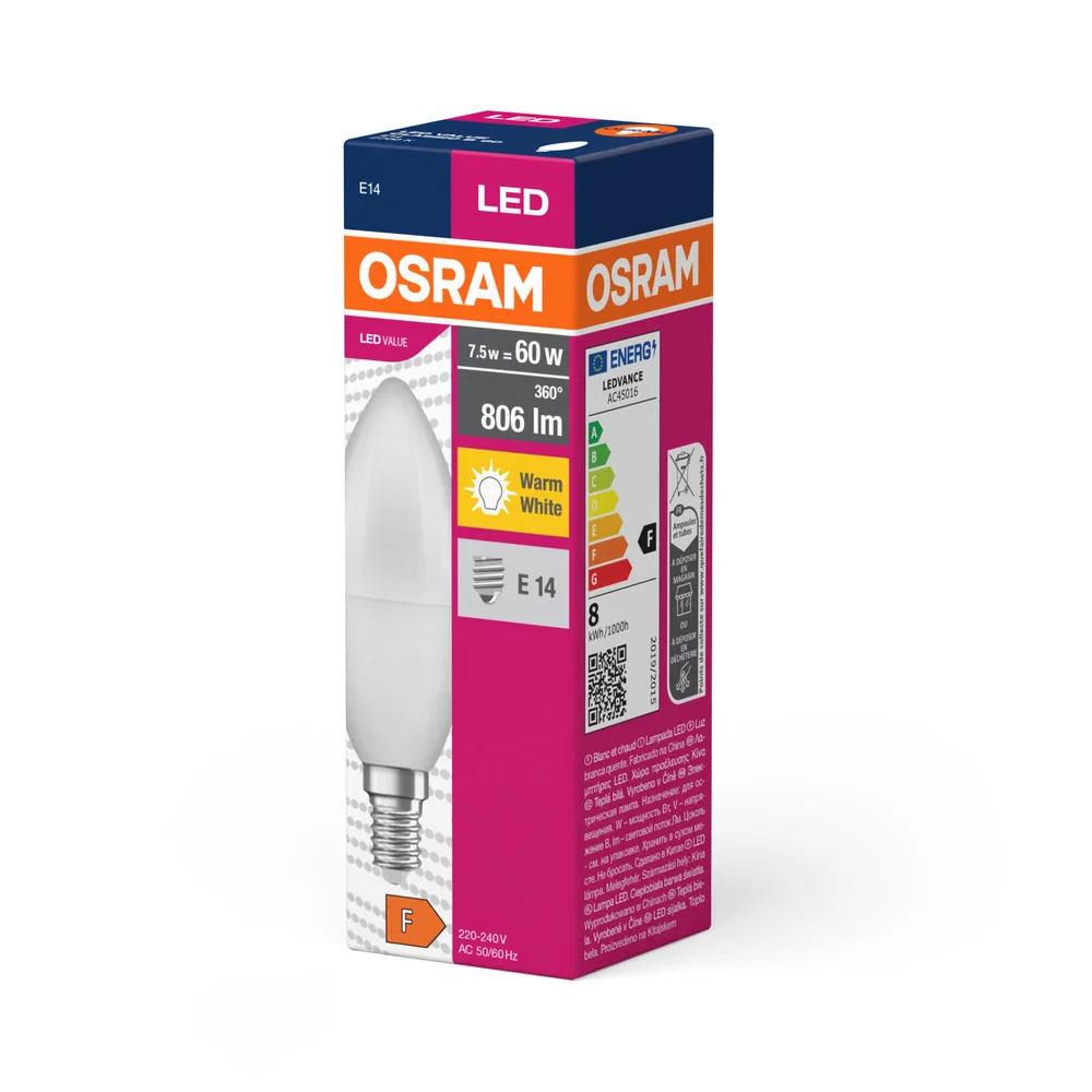 LEDVANCE LED candle VAL B39 7.5W/60W E14 2700K 806lm NonDim 15Y opal