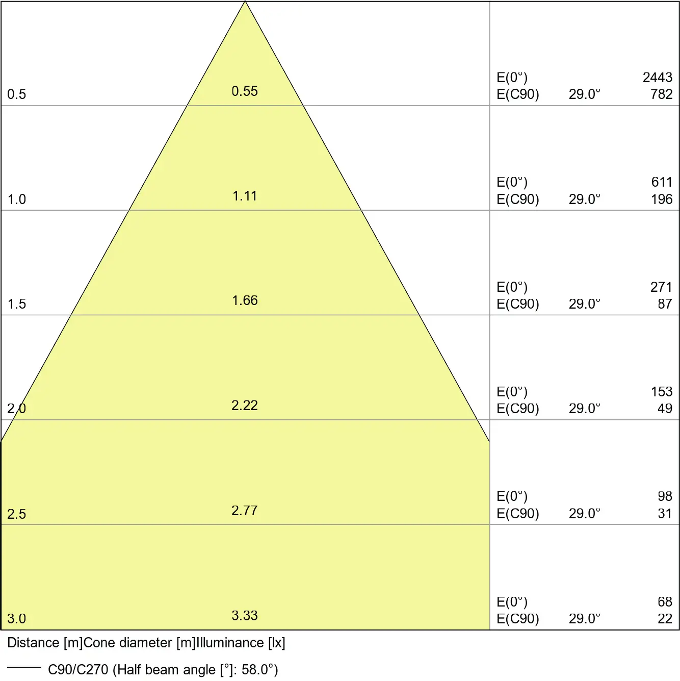 | Beam angle | 60 st. |