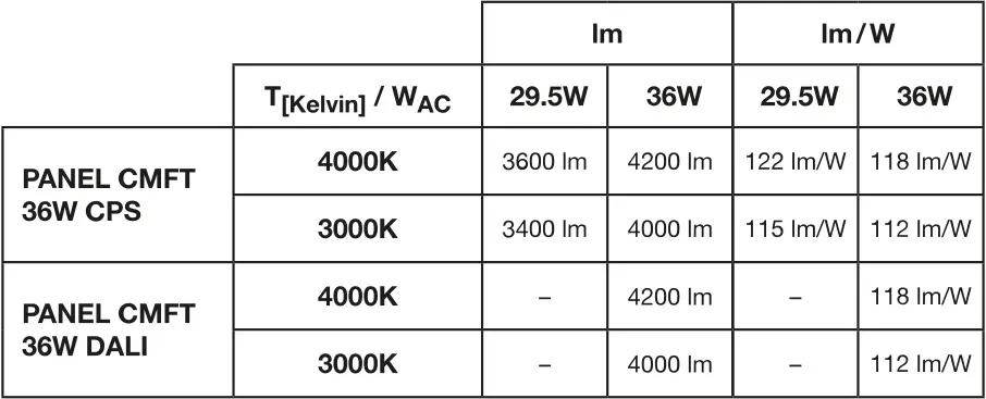 | Chromaticity | 3000/4000 K |