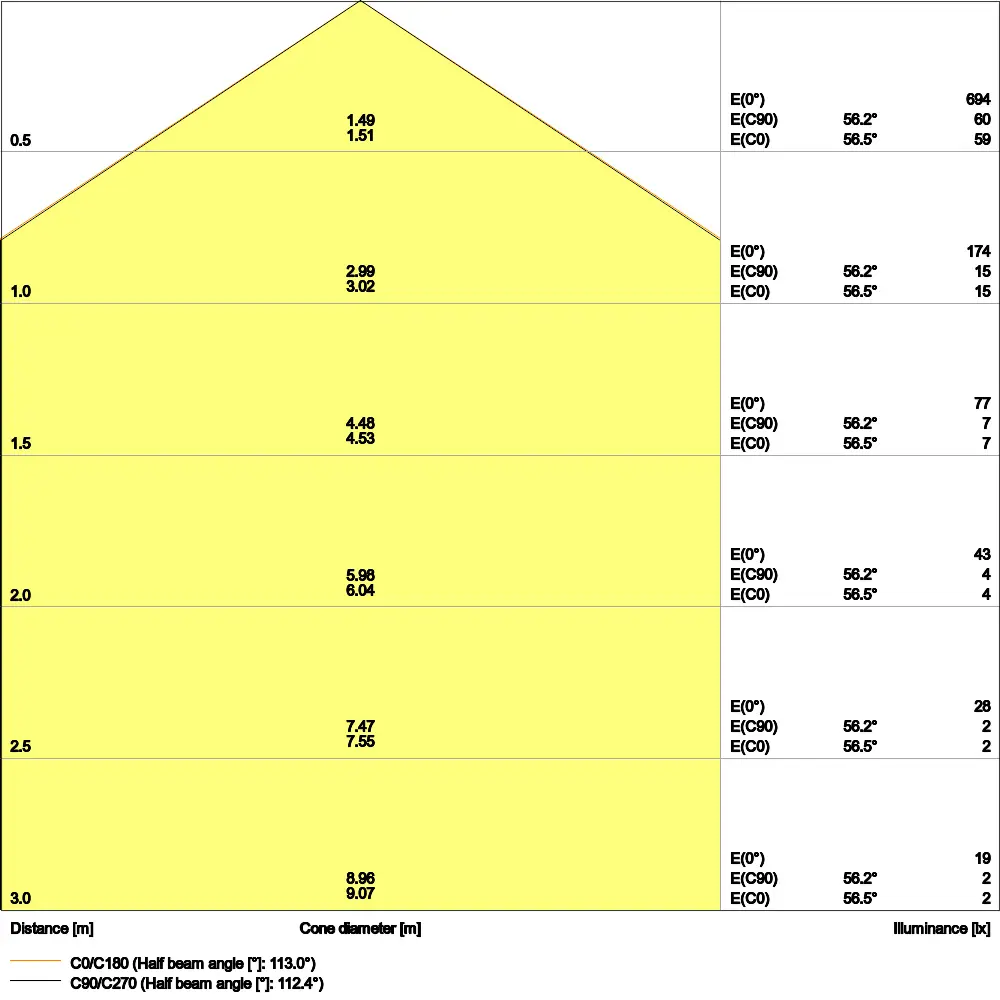 | Beam angle | 120 st. |