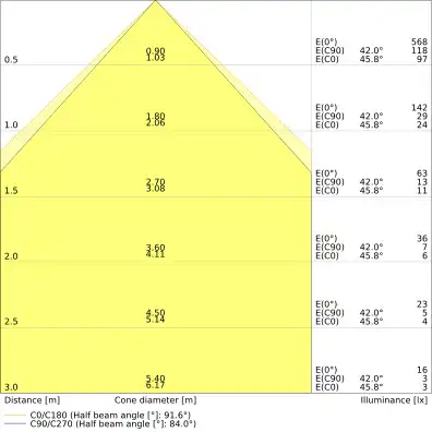 | Beam angle | 90 st. |