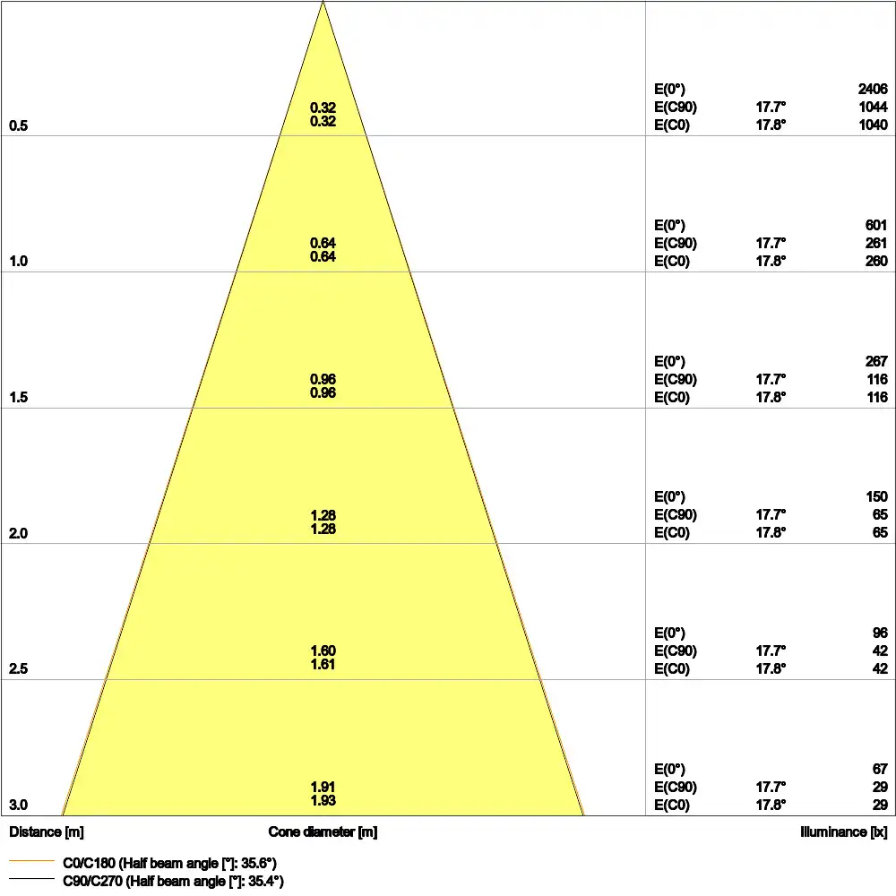 | Beam angle | 36 st. |