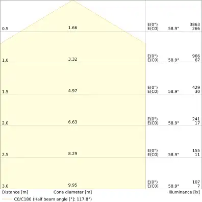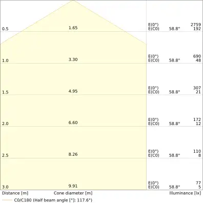 | Beam angle | 120 st. |