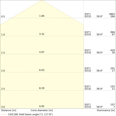 | Beam angle | 120 st. |